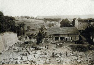 Il possédait une carrière à côté de sa maison et en utilisa les pierres, qu’il transportait sur la colline en face à l’aide d’un wagonnet Decauville. On voit encore à l’entrée de sa propriété les piles du pont où passait ce wagonnet.